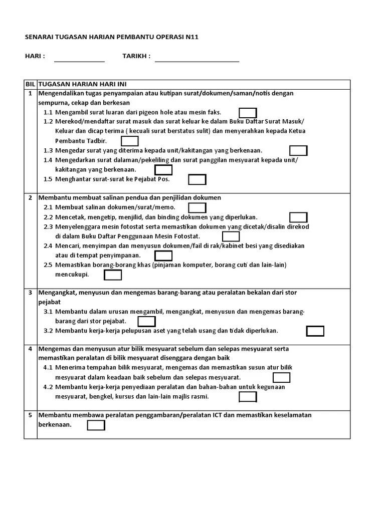 Senarai tugas pembantu tadbir perkeranian operasi n17.